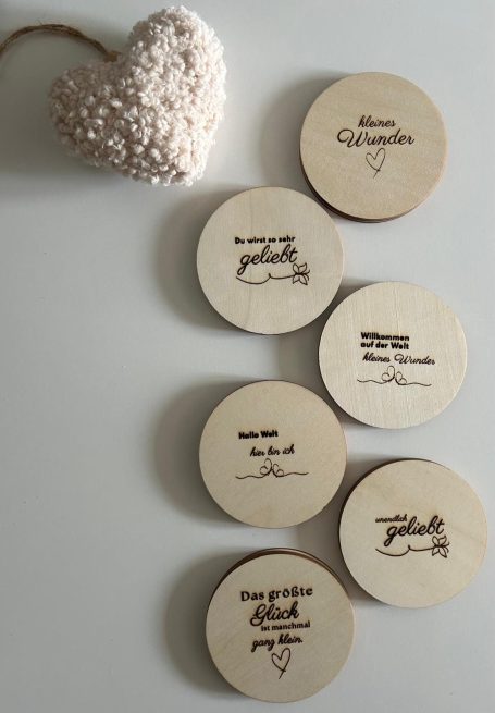 Bei mir kannst du außer den Beratungen auch liebevoll designte Produkte aus Holz erwerben. Zur Auswahl stehen aktuell verschiedene Größen an Brotzeitbrettchen, Deko-Bretter, Meilensteine auf Holzscheiben und Holzuntersetzer.